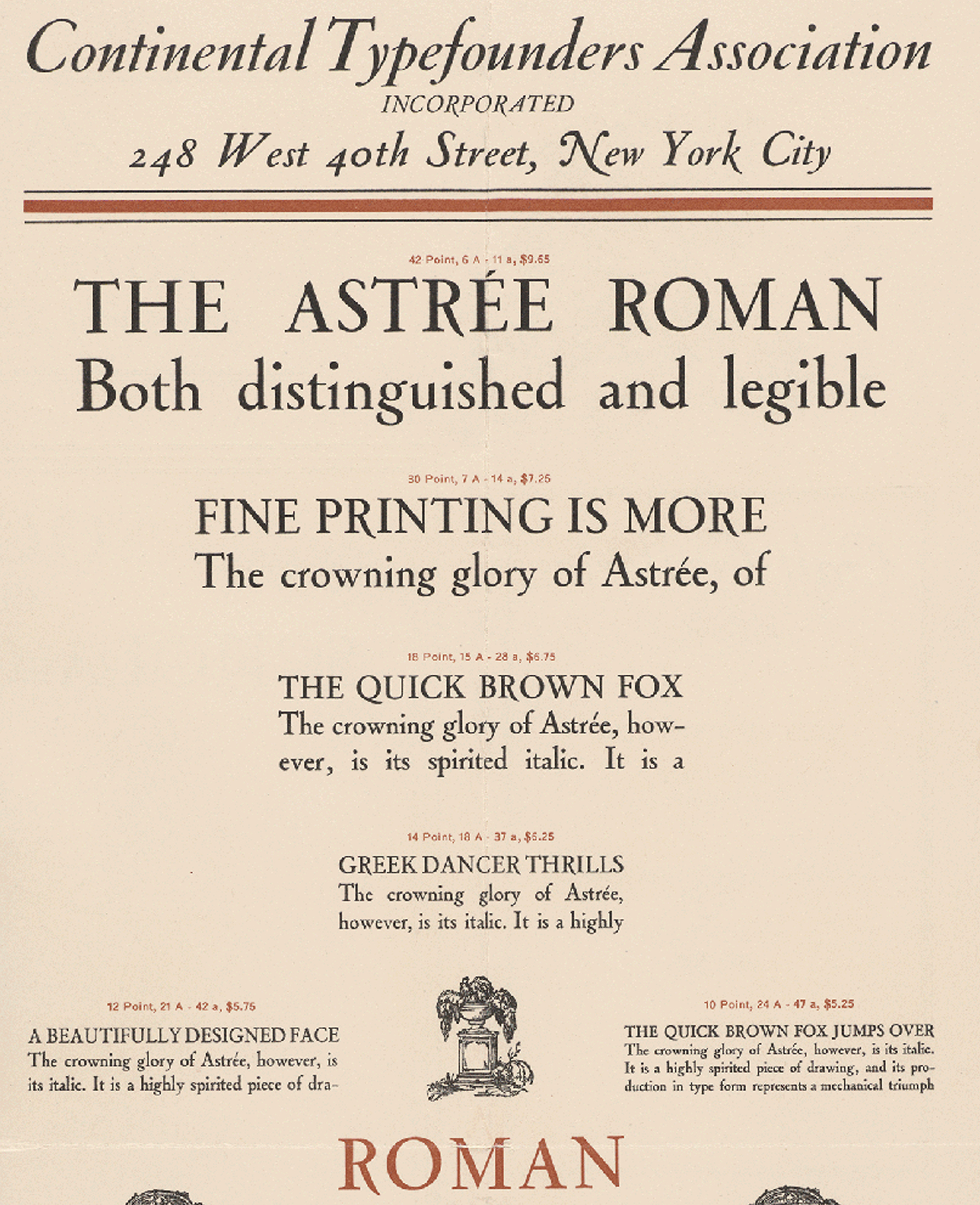 20. L’Astrée (New York: Continental Typefounders Association, 1927).