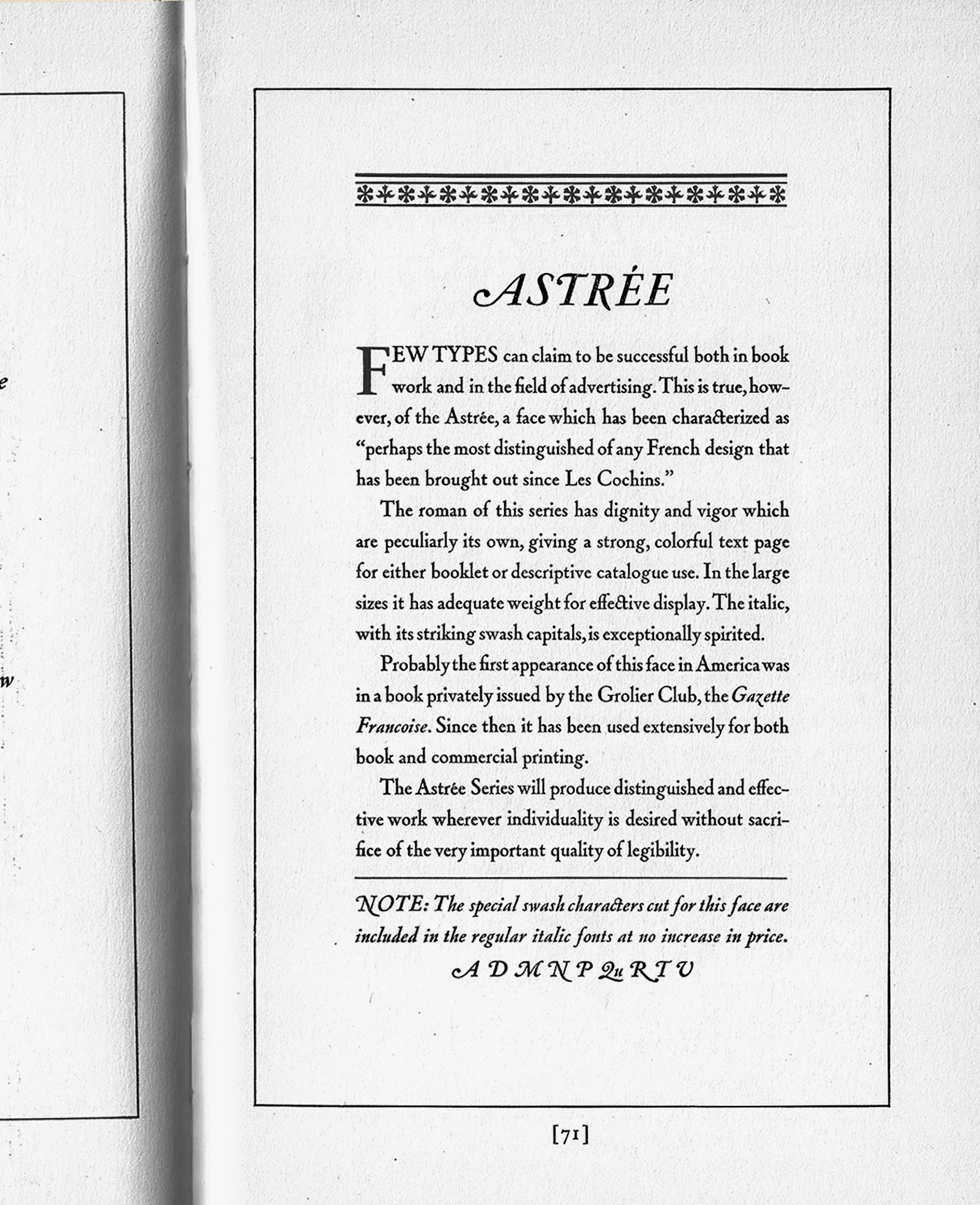 30. L’Astrée (New York: Continental Typefounders Association, 1927).