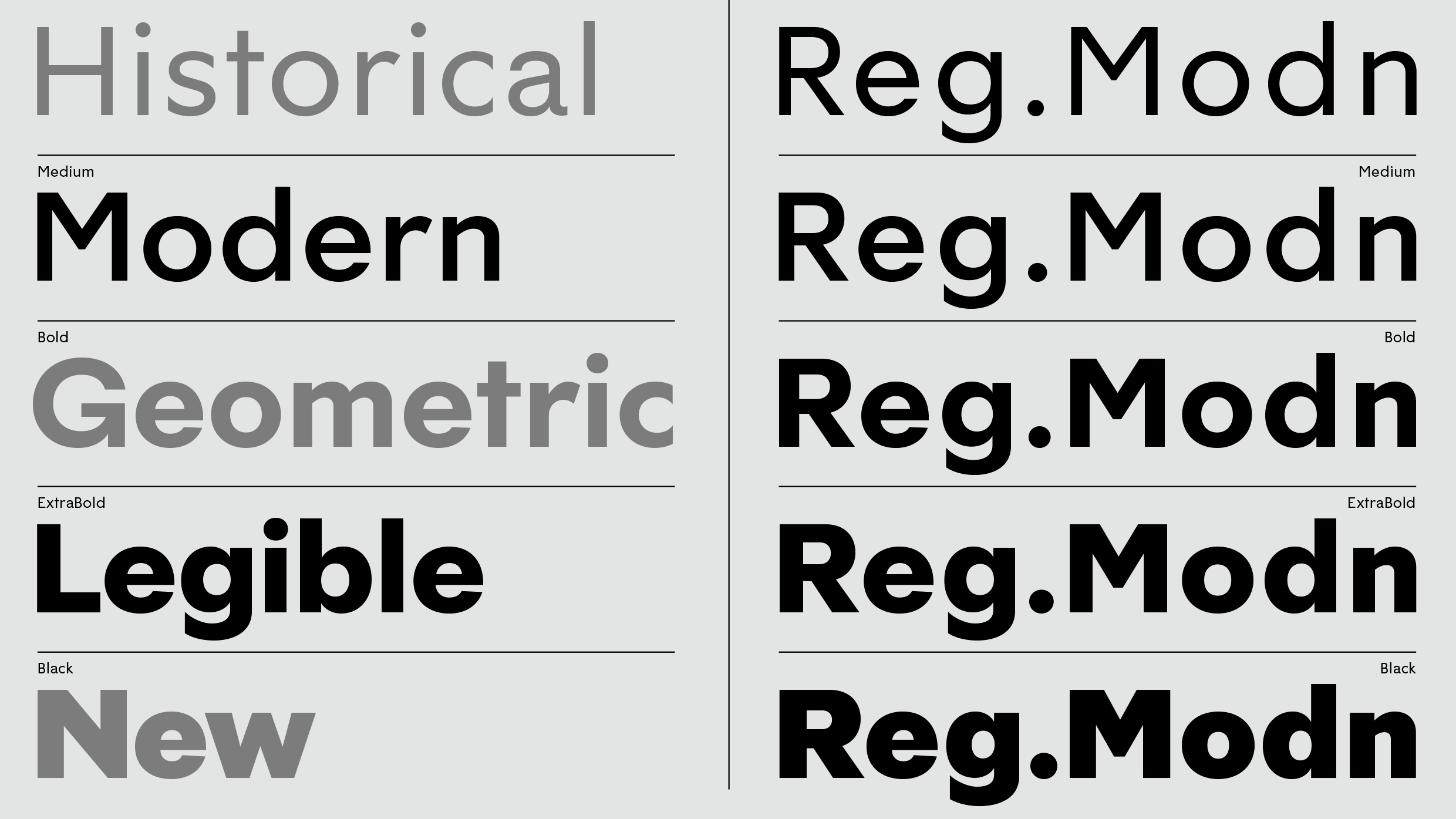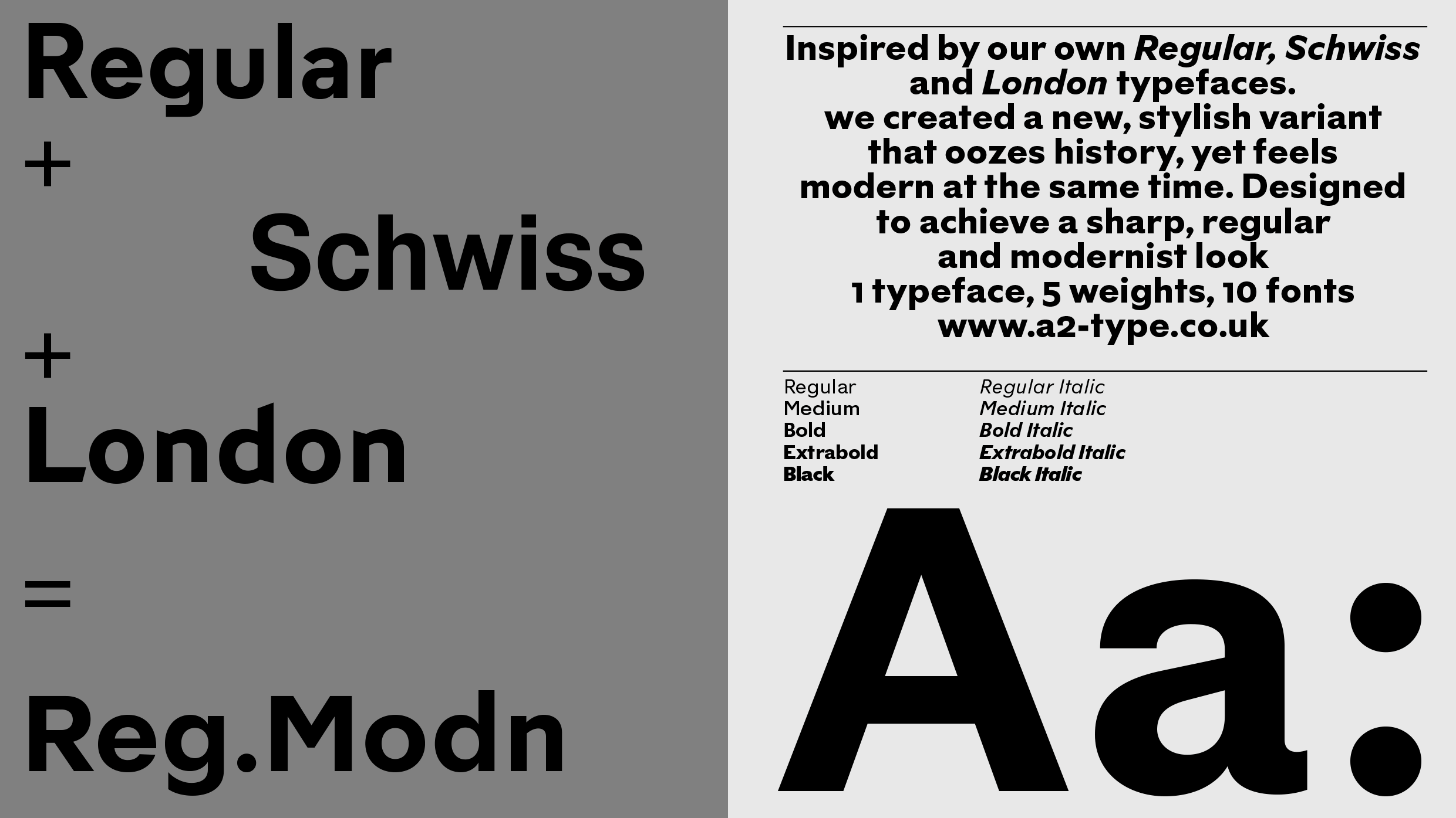 Reg.Modn — Historical, Modern, Geometric, Legible — is inspired by our Regular, Schwiss & London typefaces. We created a new, stylish variant that oozes history yet feels distinctly modern! Variable fonts are now available for both Roman and Italic styles and include the predefined weights; Regular, Medium, Bold, ExtraBold and Black, and everything in-between. The variable font format [ GX / TTF ] is ideal for designers working on digital platforms who are seeking to use a complete, all-encompassing font system.